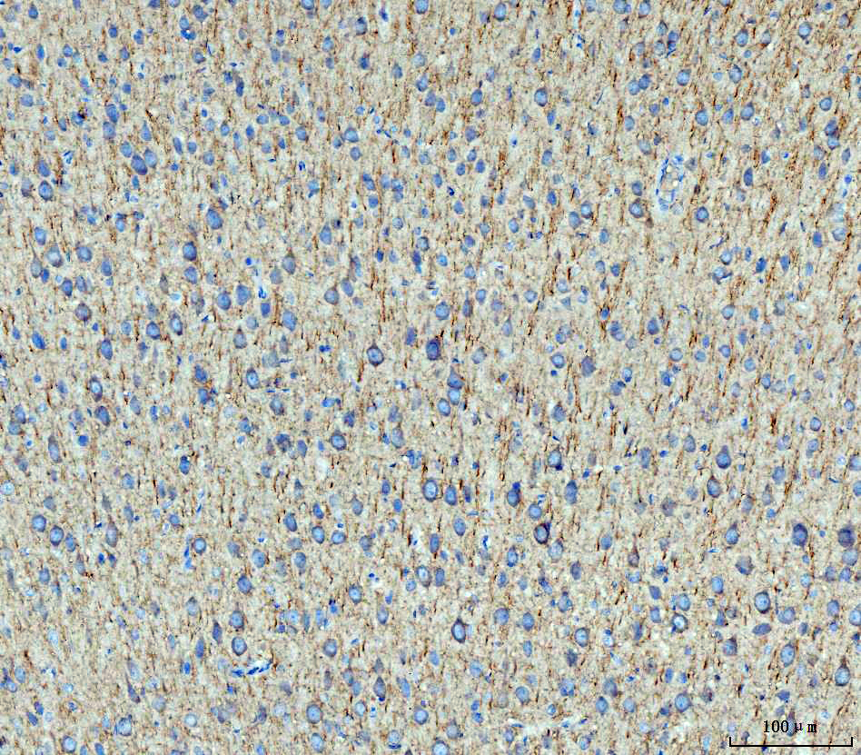 MAP2 was detected in a paraffin-embedded section of human brain tissue. The tissue section was incubated with rabbit anti-MAP2 Antibody (A01201-4) at a dilution of 1:200 and developed using HRP Conjugated Rabbit IgG Super Vision Assay Kit (Catalog # SV0002) with DAB (Catalog # AR1027) as the chromogen.