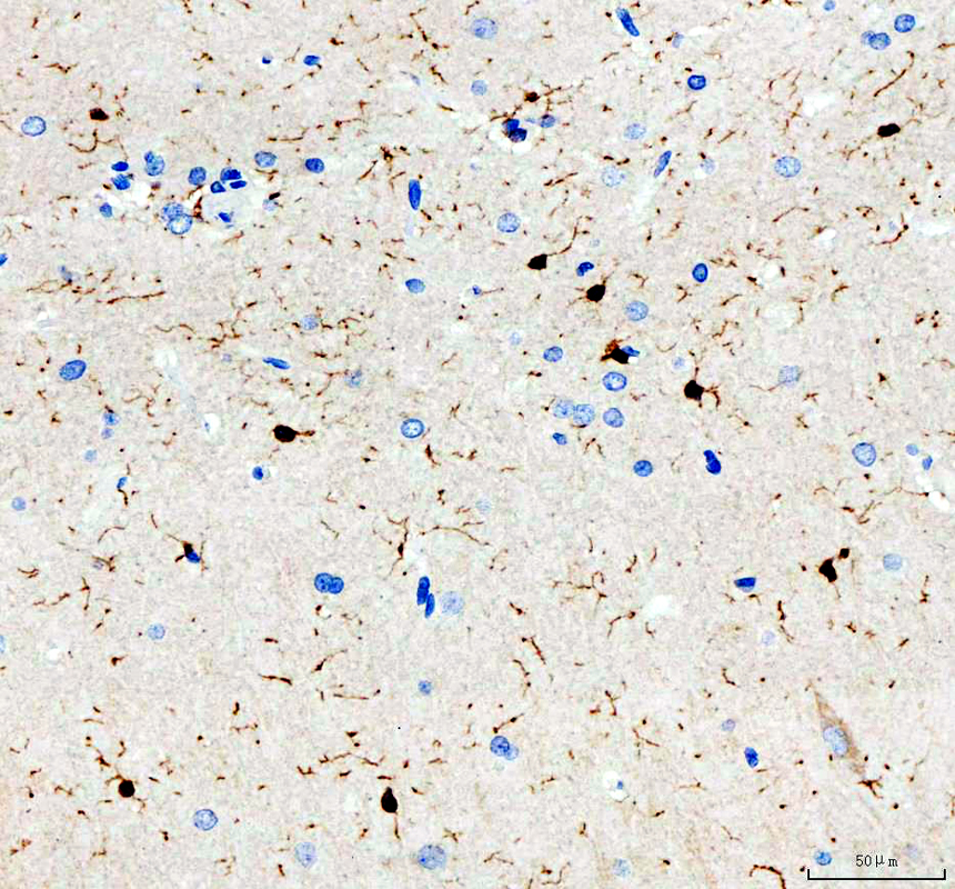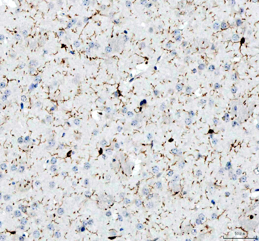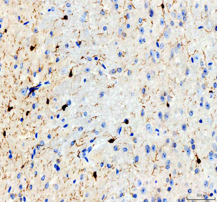 IHC analysis of IBA1/AIF1 using anti-IBA1/AIF1 antibody (A01394).