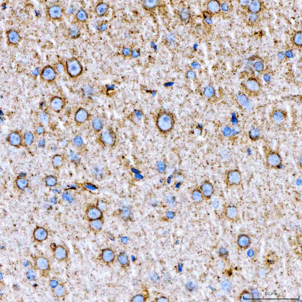 RAB7A was detected in a paraffin-embedded section of rat brain tissue. The tissue section was incubated with rabbit anti-RAB7A Antibody (A02409-1) at a dilution of 1:200 and developed using HRP Conjugated Rabbit IgG Super Vision Assay Kit (Catalog # SV0002) with DAB (Catalog # AR1027) as the chromogen.