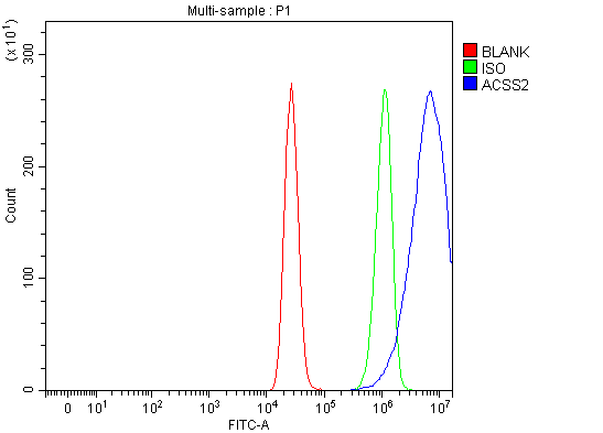 Flow Cytometry analysis of MCF-7 cells using anti-Acetyl CoA synthetase/ACSS2 antibody (A02809-1).