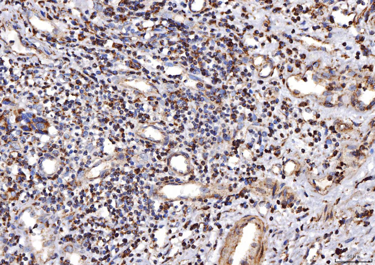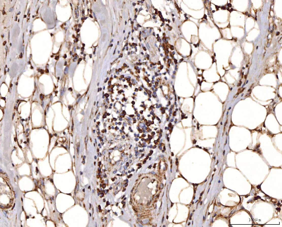 | (Boiling the paraffin sections in 10mM citrate buffer,pH6.0,or PH8.0 EDTA repair liquid for 20 mins is required for the staining of formalin/paraffin sections.) Optimal working dilutions must be determined by end user. | |