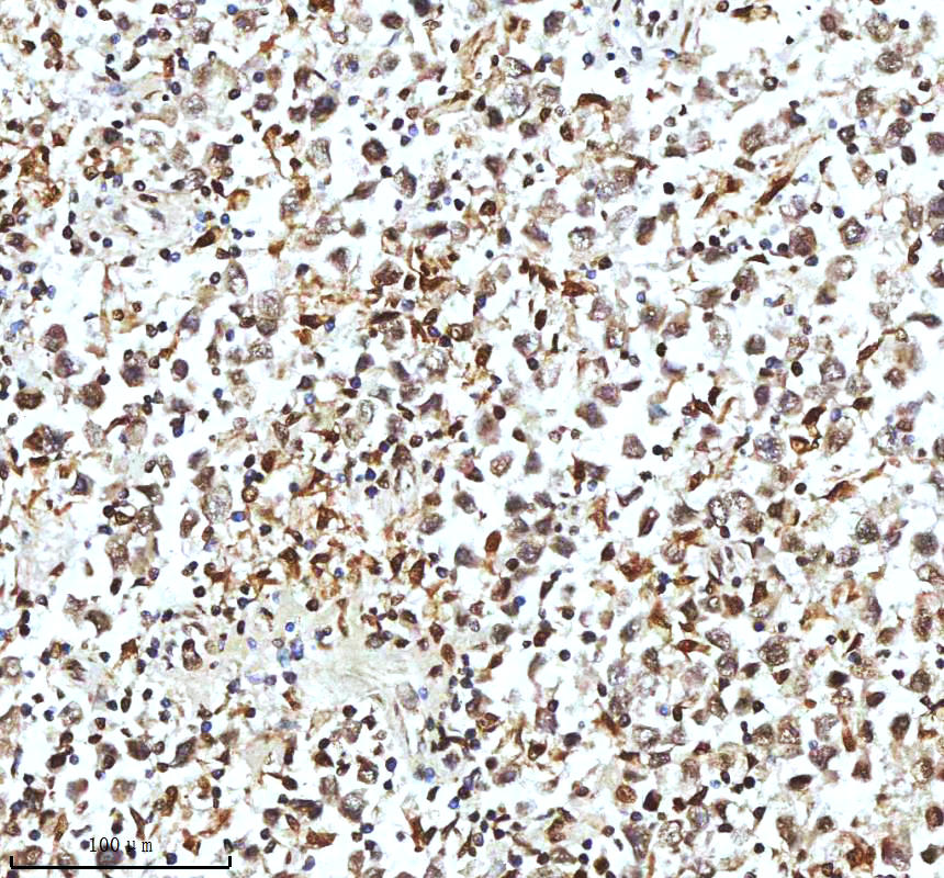 | (Boiling the paraffin sections in 10mM citrate buffer,pH6.0,or PH8.0 EDTA repair liquid for 20 mins is required for the staining of formalin/paraffin sections.) Optimal working dilutions must be determined by end user. | |