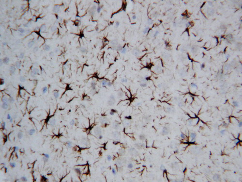 IHC analysis of GFAP using anti-GFAP antibody (BA0056).
