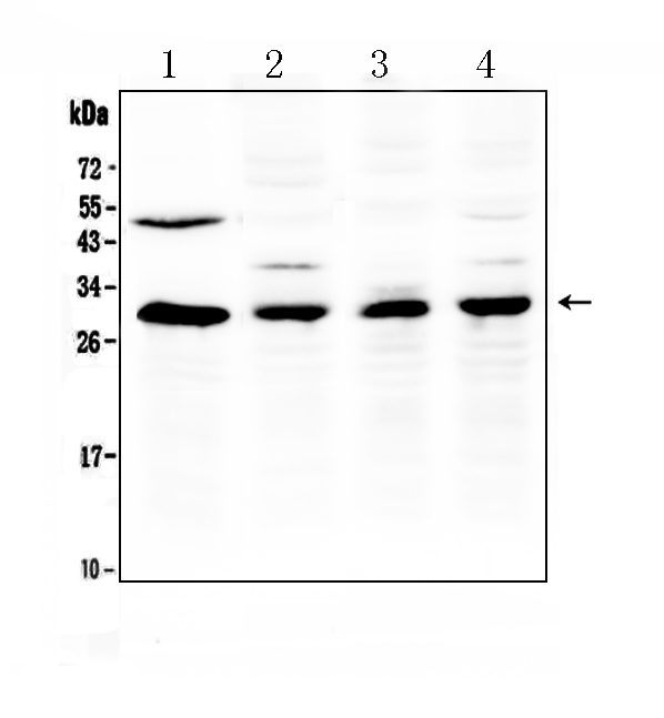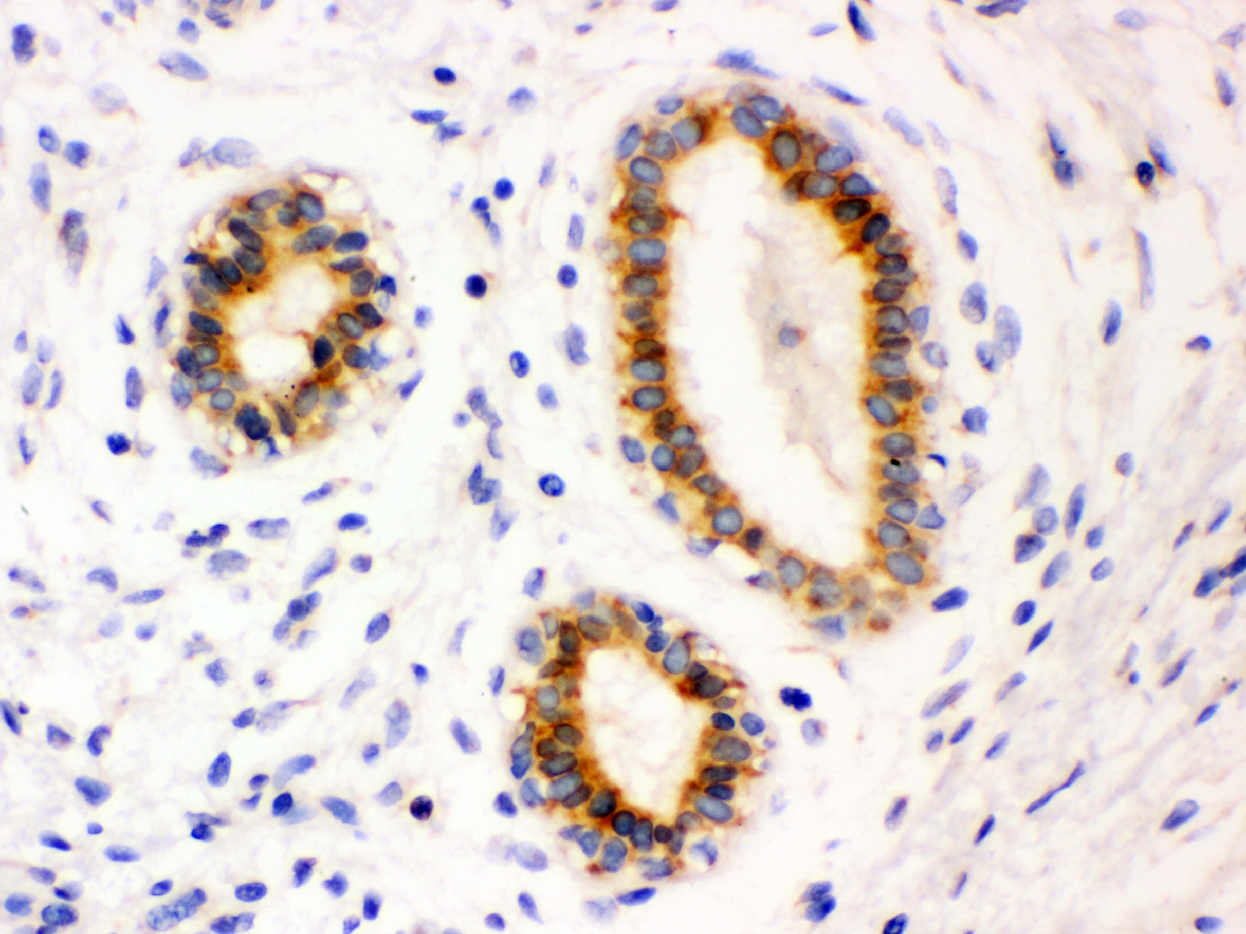 | (Boiling the paraffin sections in 10mM citrate buffer,pH6.0,or PH8.0 EDTA repair liquid for 20 mins is required for the staining of formalin/paraffin sections.) Optimal working dilutions must be determined by end user. | |