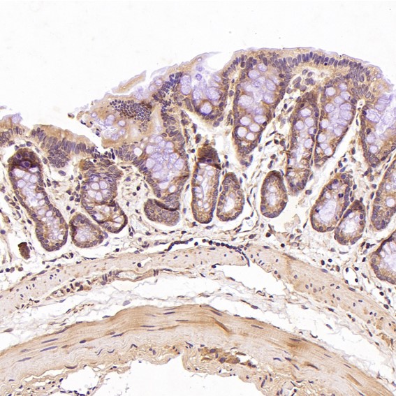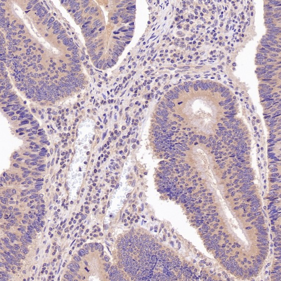 Immunohistochemical analysis of paraffin-embedded Human colon cancer, using the Antibody.