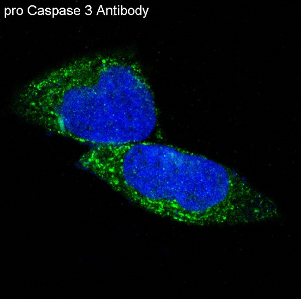 Immunofluorescent analysis of A673 cells, using pro Caspase 3 Antibody.