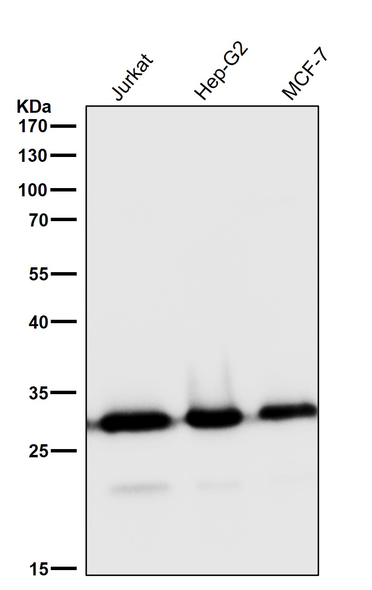 Lane 2: human Jurkat whole cell lysates,