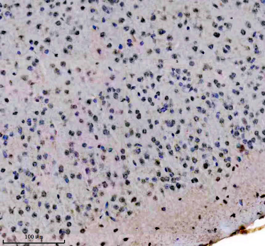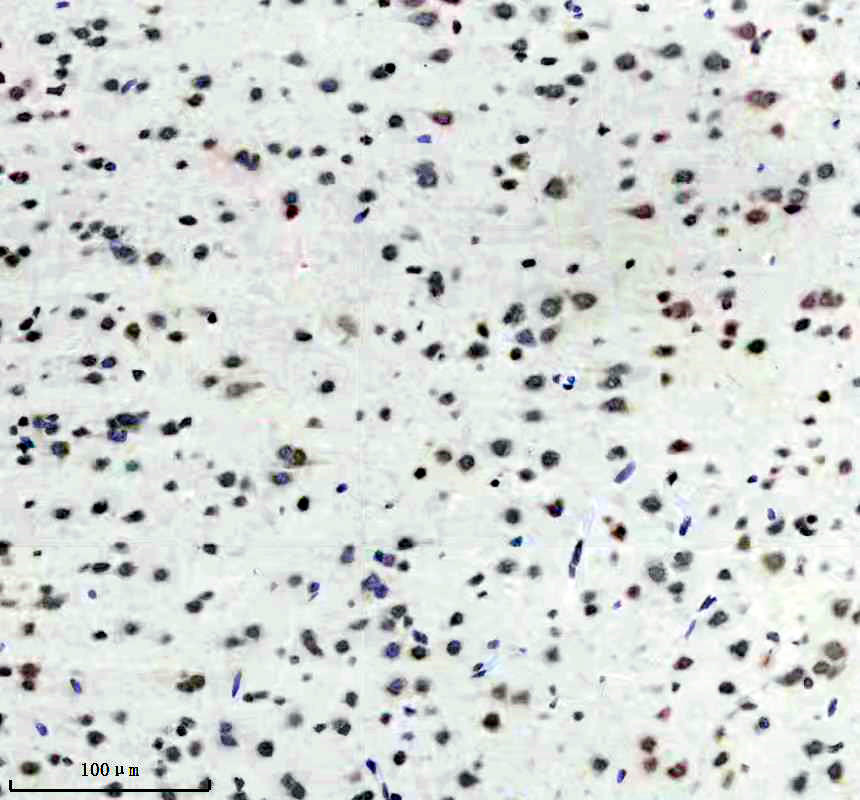 Histone H3 was detected in a paraffin-embedded section of rat brain tissue. The tissue section was incubated with rabbit anti-Histone H3 Antibody (BM4104) at a dilution of 1:200 and developed using HRP Conjugated Rabbit IgG Super Vision Assay Kit (Catalog # SV0002) with DAB (Catalog # AR1027) as the chromogen.