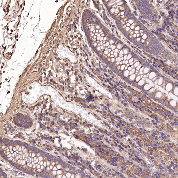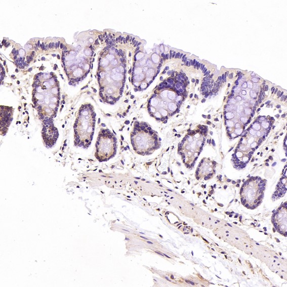 Immunohistochemical analysis of paraffin-embedded Human colon, using the Antibody at 1:500 dilution.
