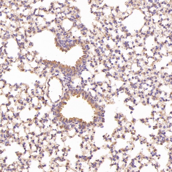 Immunohistochemical analysis of paraffin-embedded Mouse lung, using the Antibody at 1:200 dilution.