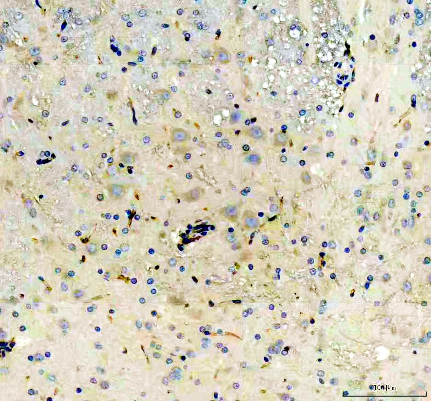 Nestin/NES was detected in a paraffin-embedded section of pig brain tissue. The tissue section was incubated with rabbit anti-Nestin/NES Antibody (BM4494) at a dilution of 1:200 and developed using HRP Conjugated Rabbit IgG Super Vision Assay Kit (Catalog # SV0002) with DAB (Catalog # AR1027) as the chromogen.