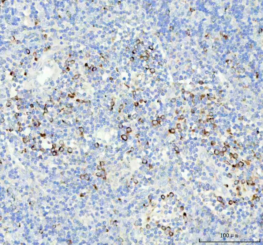 VAMP8 was detected in a paraffin-embedded section of human spleen tissue. The tissue section was incubated with rabbit anti-VAMP8 Antibody (BM4895) at a dilution of 1:200 and developed using HRP Conjugated Rabbit IgG Super Vision Assay Kit (Catalog # SV0002) with DAB (Catalog # AR1027) as the chromogen.