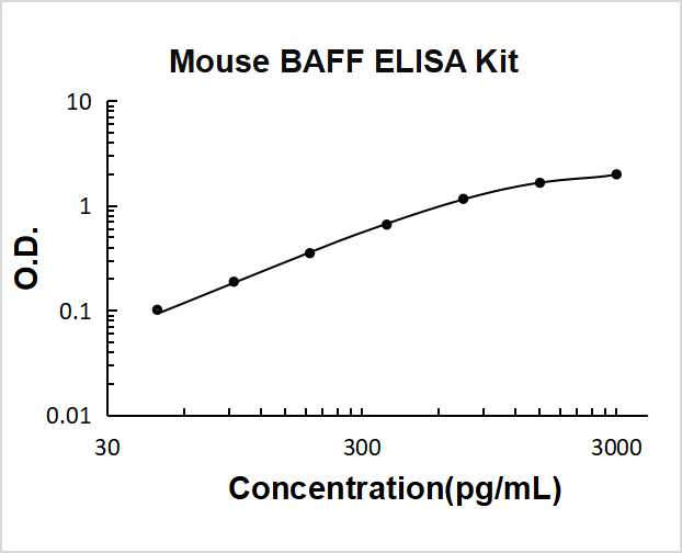 BAFF was regularly detected by enzyme-linked immunosorbent assay in brain tissue lysates and in normal spinal fluid, and in astrocytes by double fluorescence microscopy. BAFF was localized in astrocytes close to BAFF-R-expressing immune cells. BAFF receptors were strongly expressed in situ in primary central nervous system(CNS) lymphomas.1 The TNF superfamily member B cell-activating factor(BAFF) plays an important role in humoral immunity and in autoimmune diseases, including RA.Local BAFF gene targeting inhibited proinflammatory cytokine expression, suppressed generation of plasma cells and Th17 cells, and markedly ameliorated joint pathology.2 The B cell activating factor BAFF(BlyS/TALL-1/zTNF4) is a tumor necrosis factor(TNF)-related ligand that promotes B cell survival and binds to three receptors(BCMA, TACI, and the recently described BAFF-R).3 Human BAFF was mapped to chromosome 13q32-34.4 The standard used in this kit is recombinant soluble human BAFF(A134-L295) with the molecular mass of 19.6KDa.