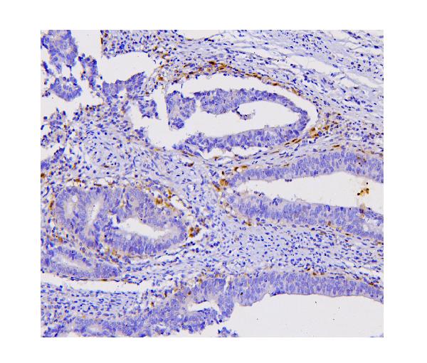 STAT1 was detected in a paraffin-embedded section of human intestinal cancer tissue. Biotinylated goat anti-mouse IgG was used as secondary antibody. The tissue section was incubated with mouse anti-STAT1 Antibody (M00036-2) at a dilution of 1:200 and developed using Strepavidin-Biotin-Complex (SABC) (Catalog # SA1021) with DAB (Catalog # AR1027) as the chromogen.