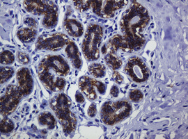 Immunohistochemical staining of paraffin-embedded Human breast tissue within the normal limits using anti-CDH1 mouse monoclonal antibody. (Heat-induced epitope retrieval by 10mM citric buffer, pH6.0, 120°C for 3min, M00063-5)