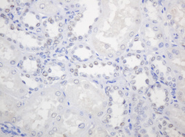 Immunohistochemical staining of paraffin-embedded Human Kidney tissue within the normal limits using anti-PCNA mouse monoclonal antibody. (Heat-induced epitope retrieval by 10mM citric buffer, pH6.0, 120°C for 3min, M00125-4)
