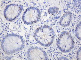Immunohistochemical staining of paraffin-embedded Human colon tissue within the normal limits using anti-PCNA mouse monoclonal antibody. (Heat-induced epitope retrieval by 10mM citric buffer, pH6.0, 120°C for 3min, M00125-4)