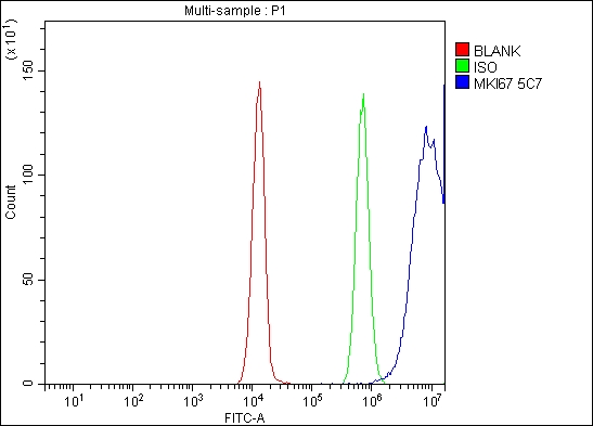 Flow Cytometry analysis of Jurkat cells using anti-Ki67/MKI67 antibody (M00254-9).