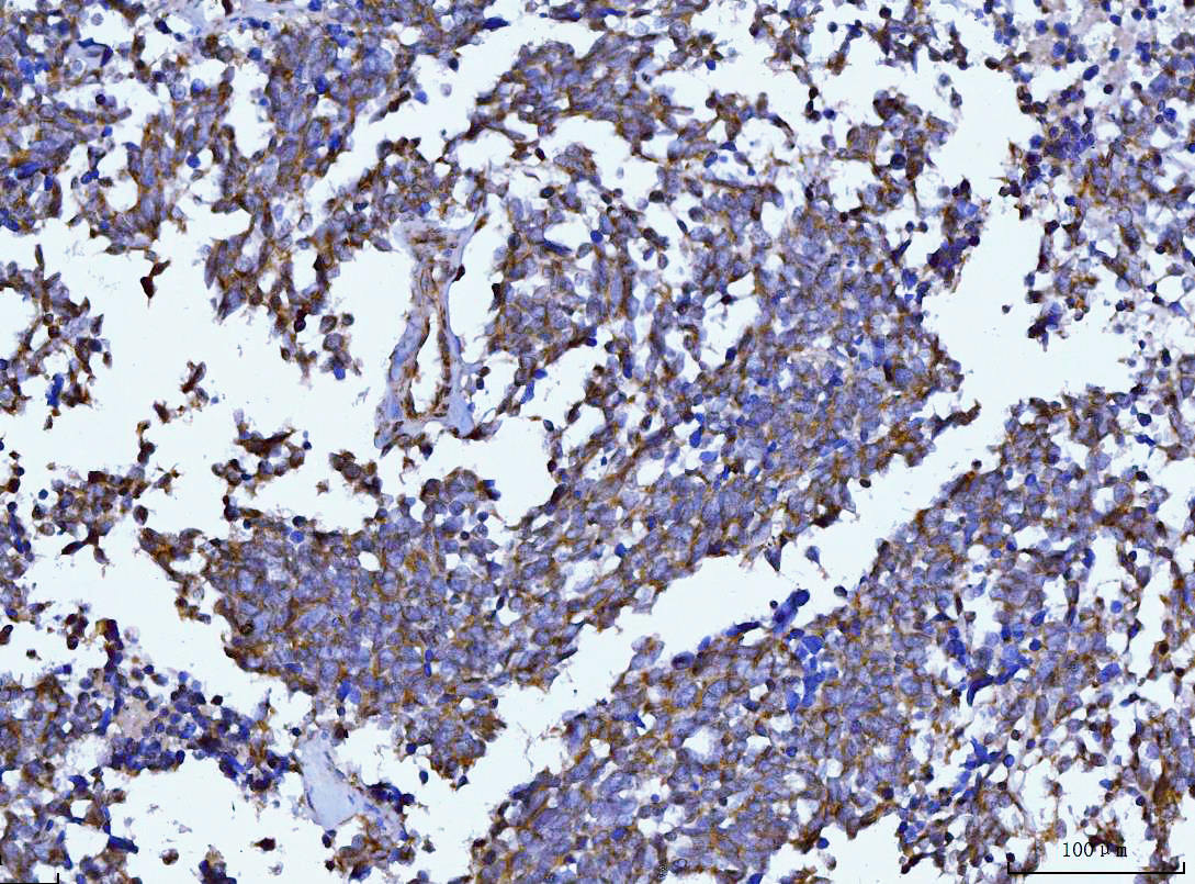 | (Boiling the paraffin sections in 10mM citrate buffer,pH6.0,or PH8.0 EDTA repair liquid for 20 mins is required for the staining of formalin/paraffin sections.) Optimal working dilutions must be determined by end user. | |