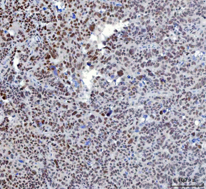 | (Boiling the paraffin sections in 10mM citrate buffer,pH6.0,or PH8.0 EDTA repair liquid for 20 mins is required for the staining of formalin/paraffin sections.) Optimal working dilutions must be determined by end user. | |
