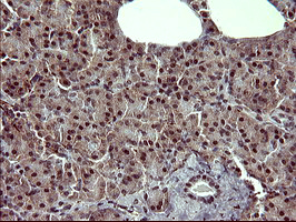 Immunohistochemical staining of paraffin-embedded Human pancreas tissue within the normal limits using anti-TH mouse monoclonal antibody. (M01917-2)