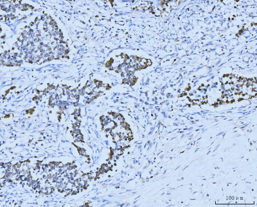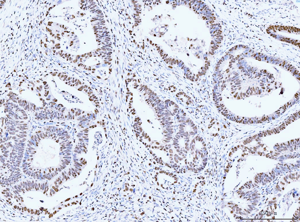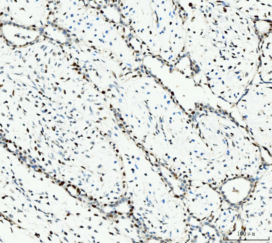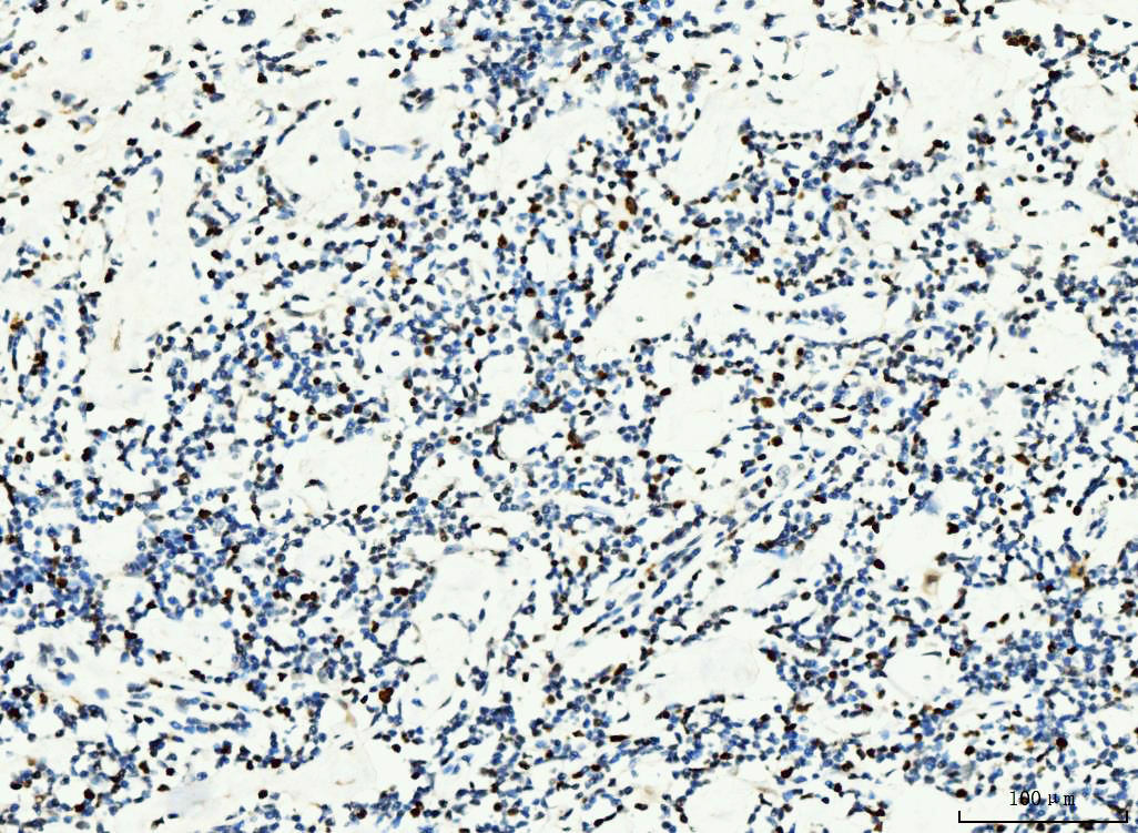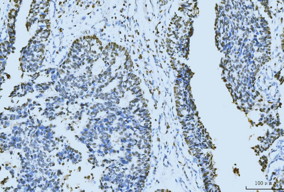 | (Boiling the paraffin sections in 10mM citrate buffer,pH6.0,or PH8.0 EDTA repair liquid for 20 mins is required for the staining of formalin/paraffin sections.) Optimal working dilutions must be determined by end user. | |
