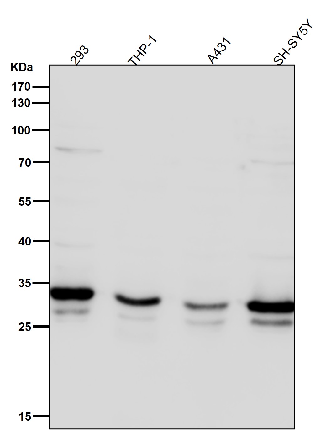 Western blot analysis of Syntaxin 4 expression in A431 cell lysate.