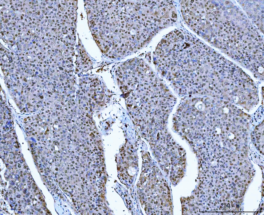 | (Boiling the paraffin sections in 10mM citrate buffer,pH6.0,or PH8.0 EDTA repair liquid for 20 mins is required for the staining of formalin/paraffin sections.) Optimal working dilutions must be determined by end user. | |