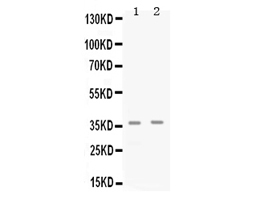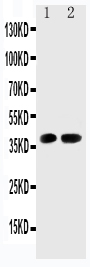 After electrophoresis, proteins were transferred to a membrane. Then the membrane was incubated with rabbit anti-CDK6 antigen affinity purified polyclonal antibody (PB1047) at a dilution of 1:1000 and probed with a goat anti-rabbit IgG-HRP secondary antibody (Catalog # BA1054). The signal is developed using ECL Plus Western Blotting Substrate (Catalog # AR1197). A specific band was detected for CDK6 at approximately 37 kDa. The expected band size for CDK6 is at 37 kDa.
