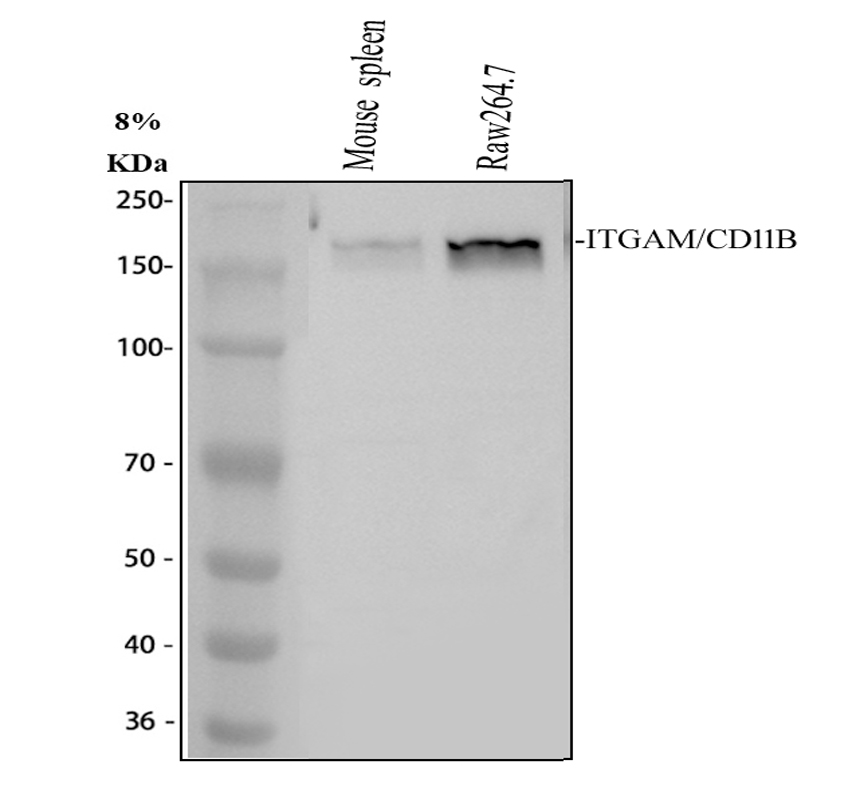 Western blot analysis of CD11B/Integrin Alpha M/ITGAM using anti-CD11B/Integrin Alpha M/ITGAM antibody (PB9140).