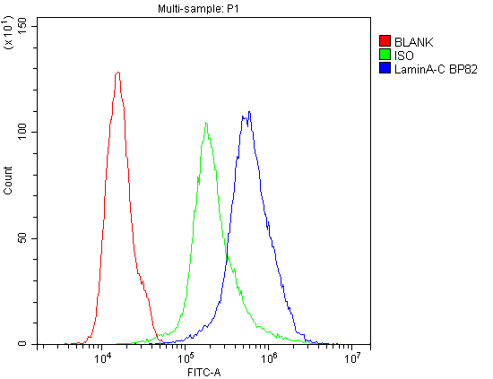 ICC analysis of Lamin A/C using anti-Lamin A/C antibody (PB9280).