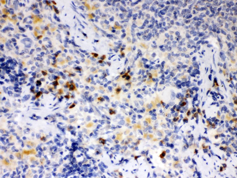 | (Boiling the paraffin sections in 10mM citrate buffer,pH6.0,or PH8.0 EDTA repair liquid for 20 mins is required for the staining of formalin/paraffin sections.) Optimal working dilutions must be determined by end user. | |