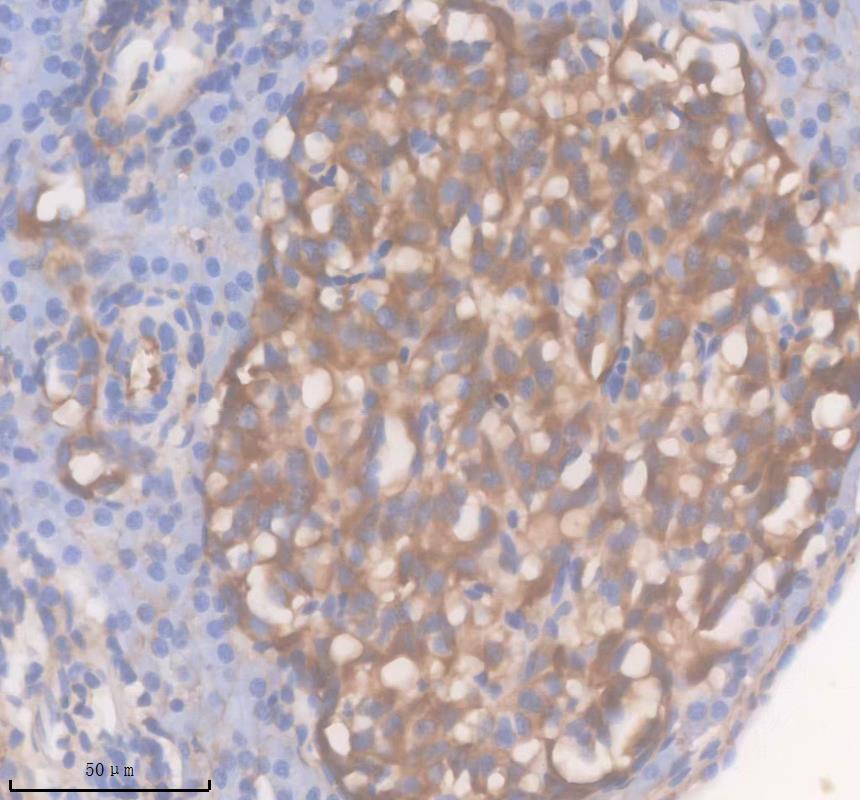 ABCE1 was detected in a paraffin-embedded section of zebrafish kidney tissue. The tissue section was incubated with rabbit anti-ABCE1 Antibody (AZQ6TNW3-1) at a dilution of 1:200 and developed using HRP Conjugated Rabbit IgG Super Vision Assay Kit (Catalog # SV0002) with DAB (Catalog # AR1027) as the chromogen.