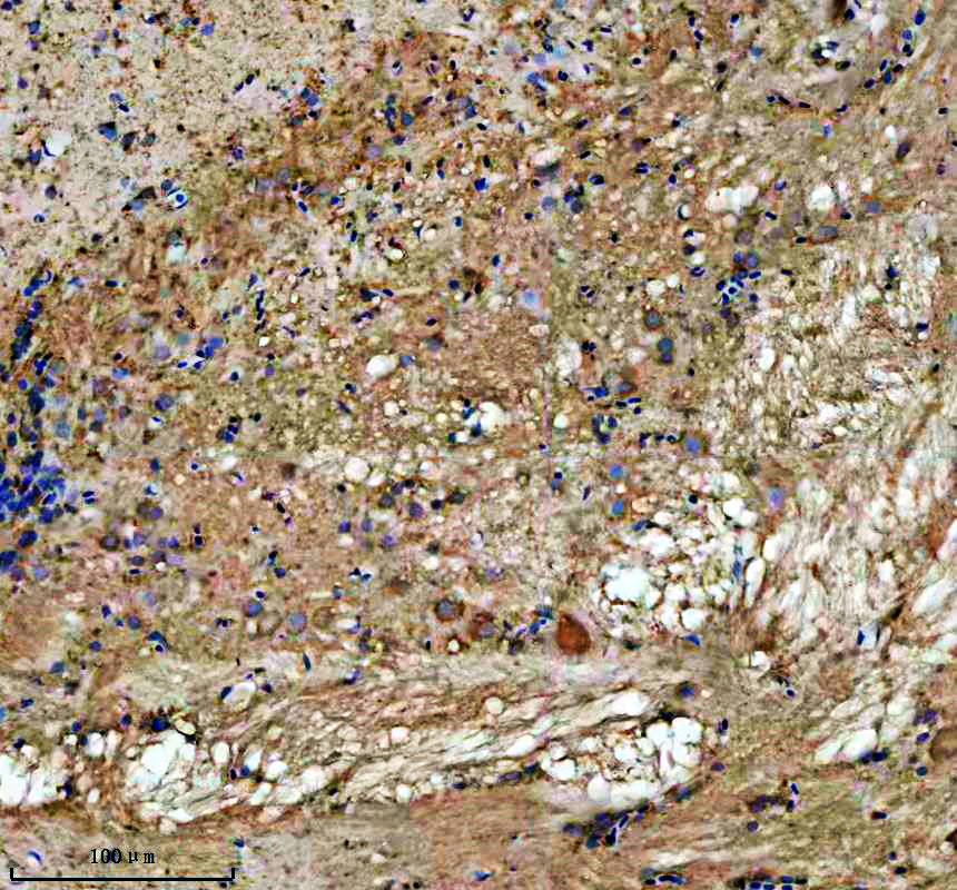ABCE1 was detected in a paraffin-embedded section of zebrafish brain tissue. The tissue section was incubated with rabbit anti-ABCE1 Antibody (AZQ6TNW3-1) at a dilution of 1:200 and developed using HRP Conjugated Rabbit IgG Super Vision Assay Kit (Catalog # SV0002) with DAB (Catalog # AR1027) as the chromogen.