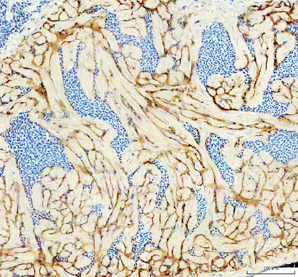 ABCE1 was detected in a paraffin-embedded section of zebrafish colon tissue. The tissue section was incubated with rabbit anti-ABCE1 Antibody (AZQ6TNW3-1) at a dilution of 1:200 and developed using HRP Conjugated Rabbit IgG Super Vision Assay Kit (Catalog # SV0002) with DAB (Catalog # AR1027) as the chromogen.