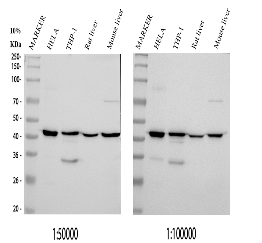 Lane 1: Hela whole cell lysates,